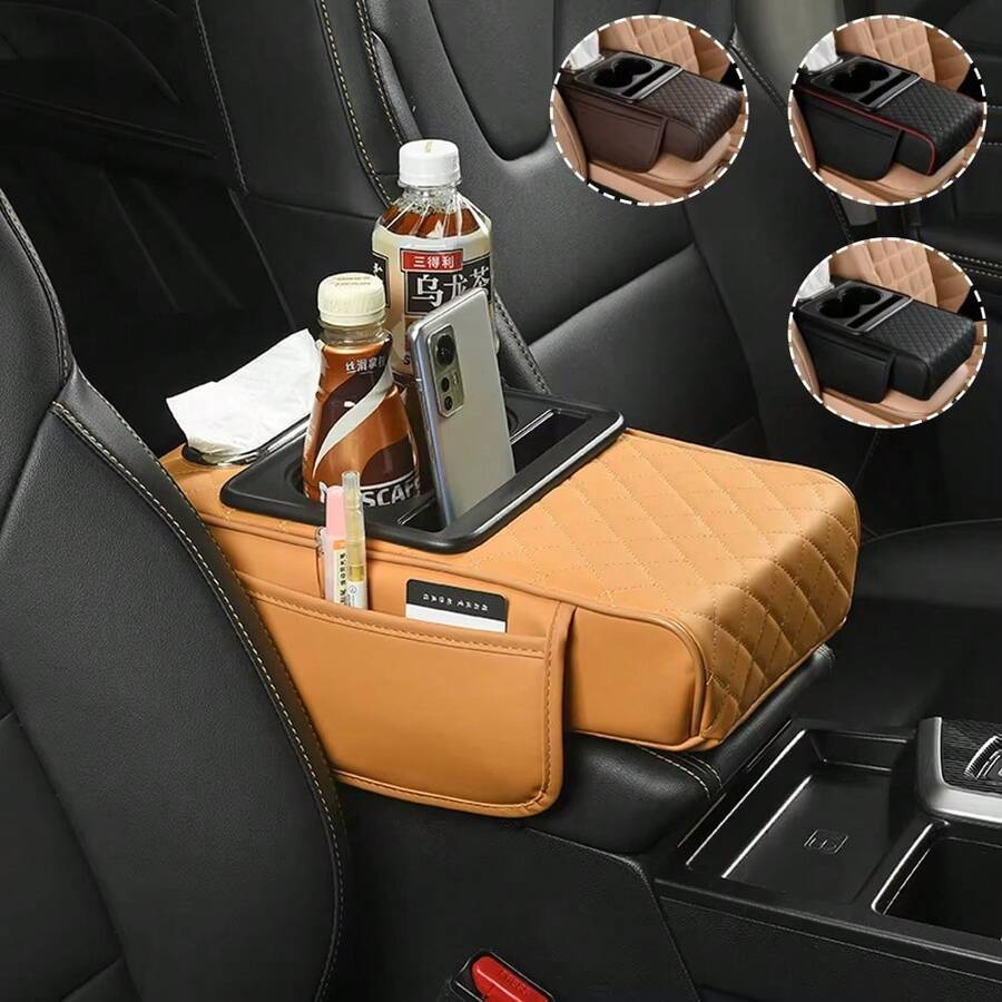 1个通用多功能增高垫,扶手箱垫,汽车储物箱配件,扶手增高垫,带2个杯架的扶手箱增高垫,扶手保护垫,记忆海绵扶手肘托