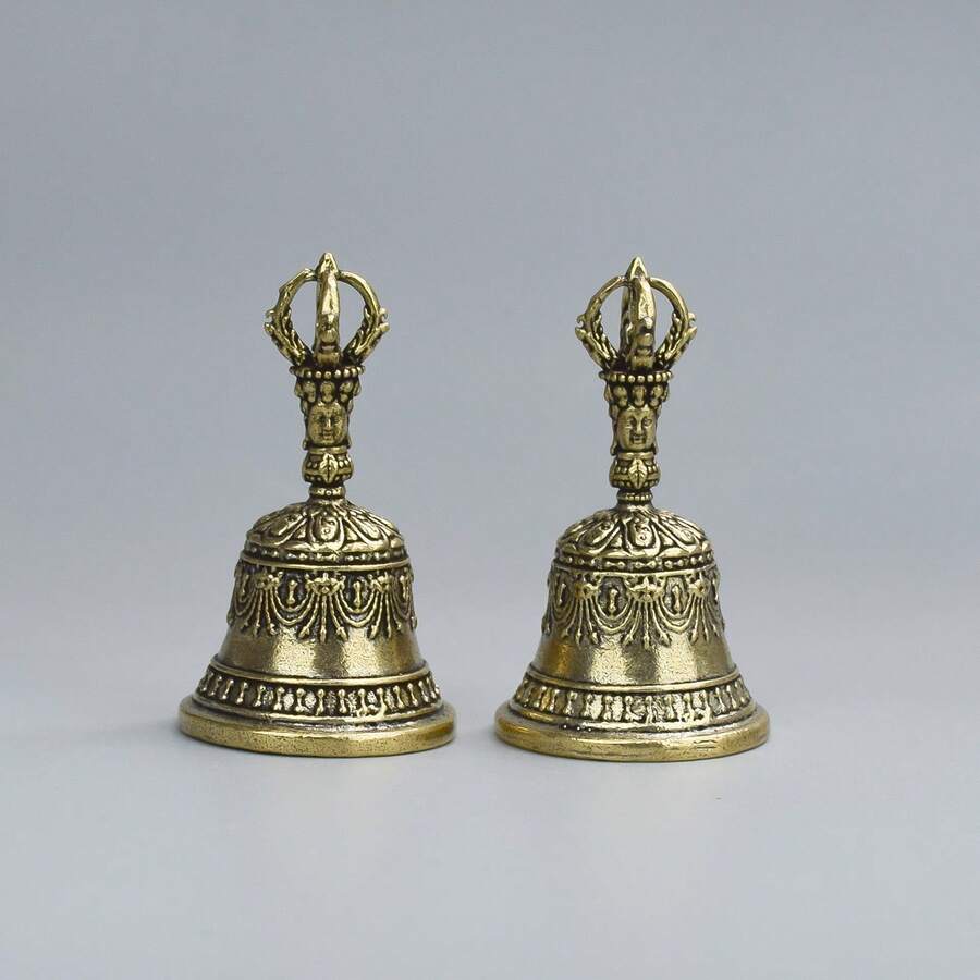 1个复古铜质金刚铃,佛教法器装饰,创意迷你手铃挂饰