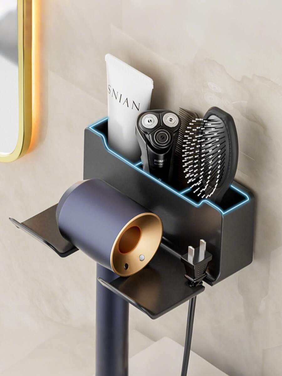1 件壁挂式吹风机支架、储物架、免提吹风机挂架 - 浴室吹风机储物架 - 适合所有浴室类型 - 保持吹风机整洁且易于取用 - 送给房主的绝佳礼物