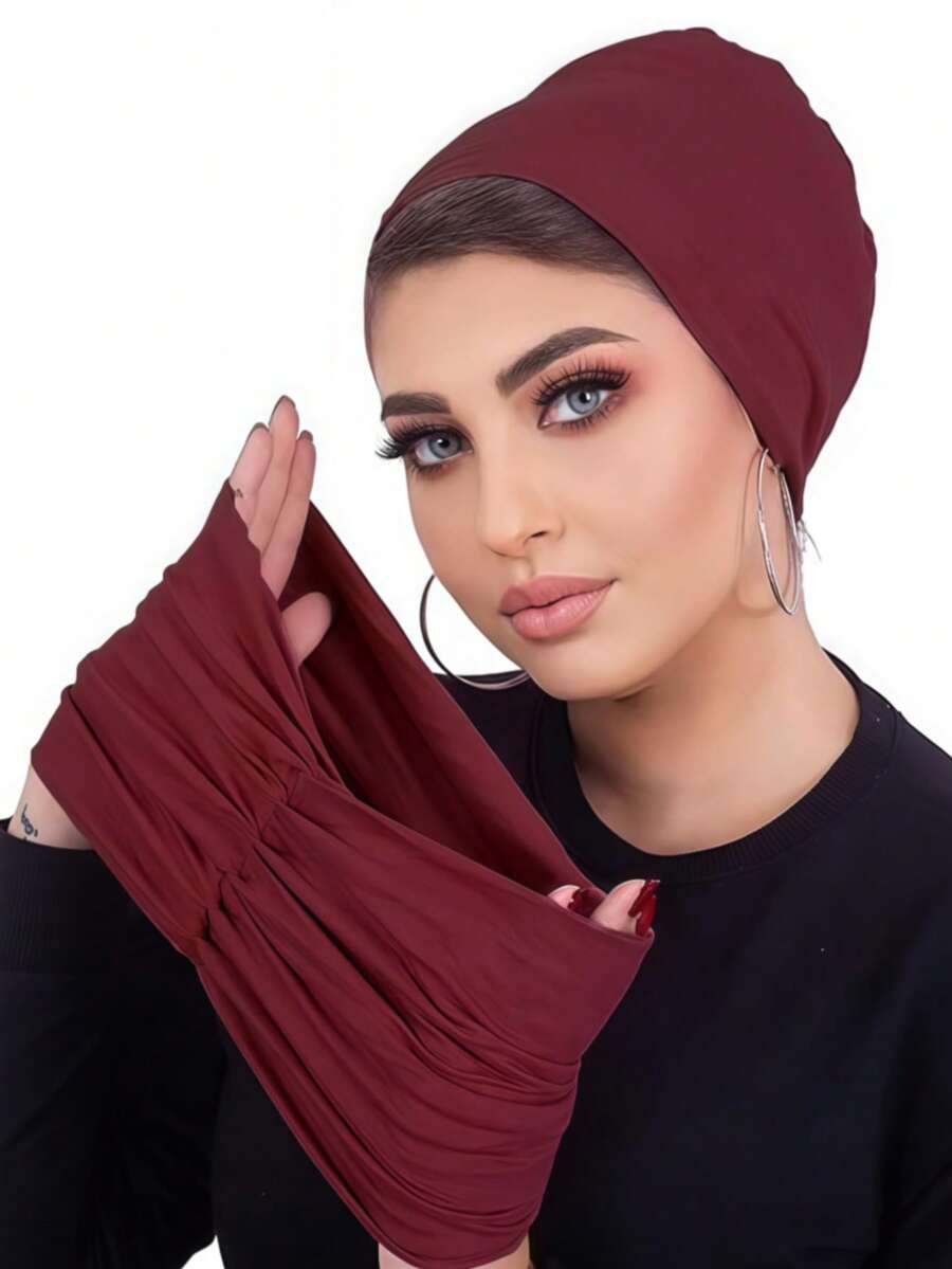 1 件女士经典二合一即时头巾头巾和头带,高弹性褶皱设计,吸湿排汗平纹针织面料,适合穆斯林日常生活和聚会