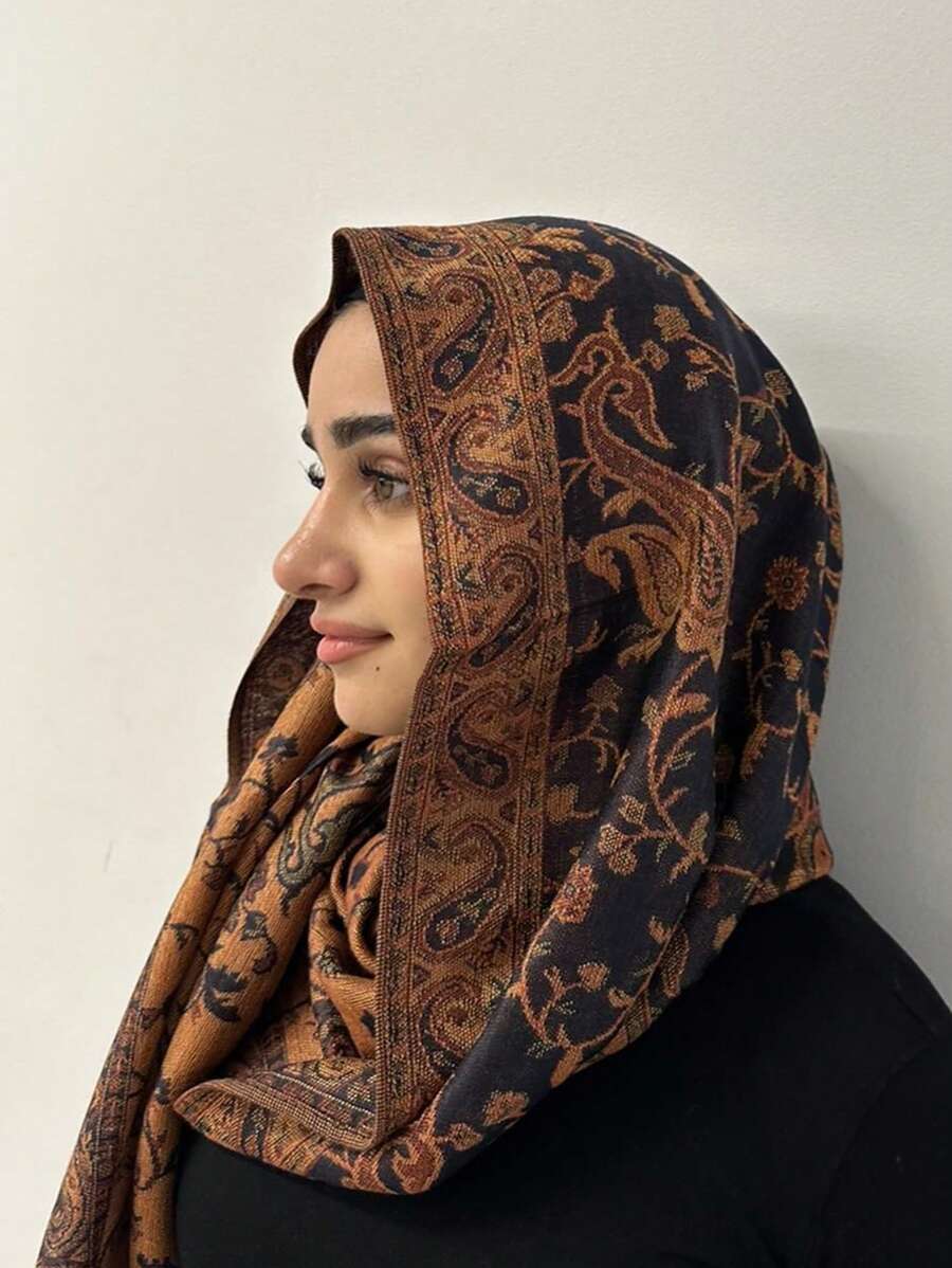1 件女士佩斯利花纹和花卉刺绣波西米亚风格头巾围巾,复古休闲防晒披肩,适合日常穿着,秋冬