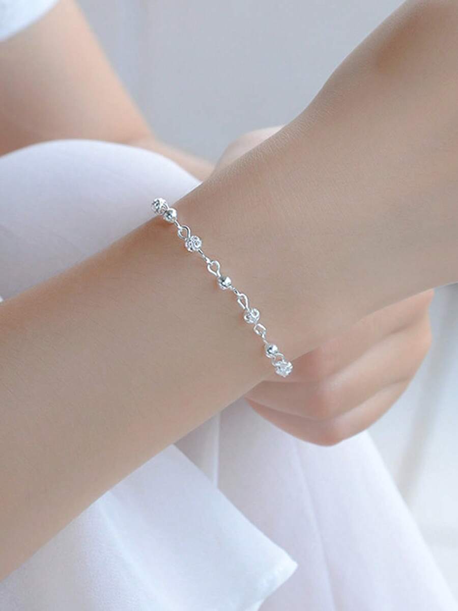 1件女士镂空串珠手链,时尚镀银精致圆球手链