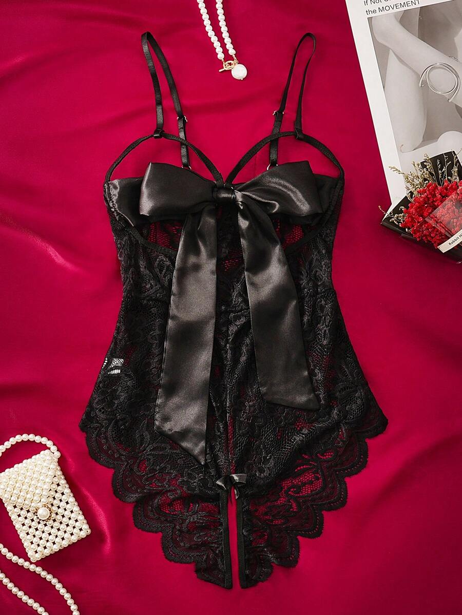 1 件女士性感内衣蕾丝网眼透视开裆紧身衣,坏蛋造型
