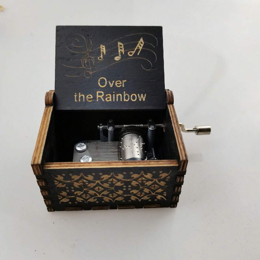 1 个木制音乐盒,手摇经典“彩虹之上”音乐盒,复古雕花木制音乐盒,适用于家庭客厅办公室装饰、情人节新年复活节礼物