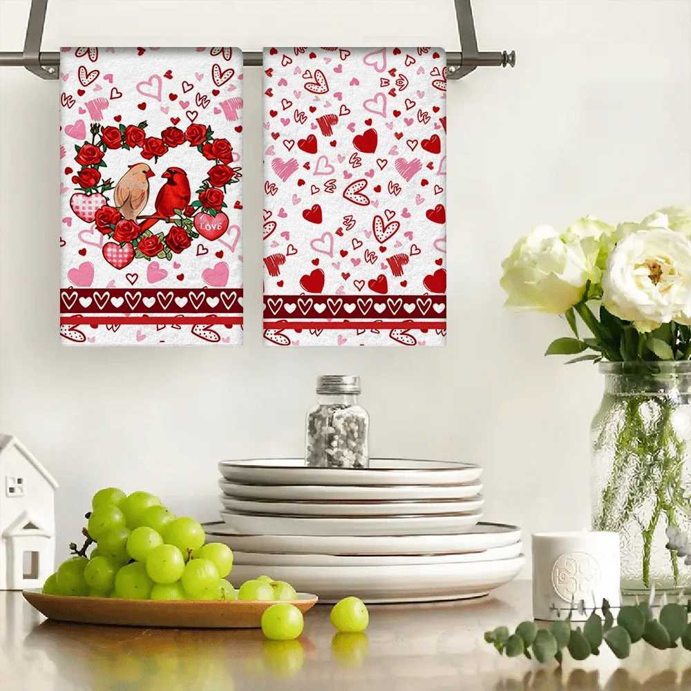 2/4/48片装厨房抹布,情人节爱心玫瑰卡车图案涤纶抹布,柔软吸水,适合日常厨房清洁,也可作为婚礼或节日装饰,增添浪漫氛围,厨房装饰毛巾,情人节,婚礼装饰
