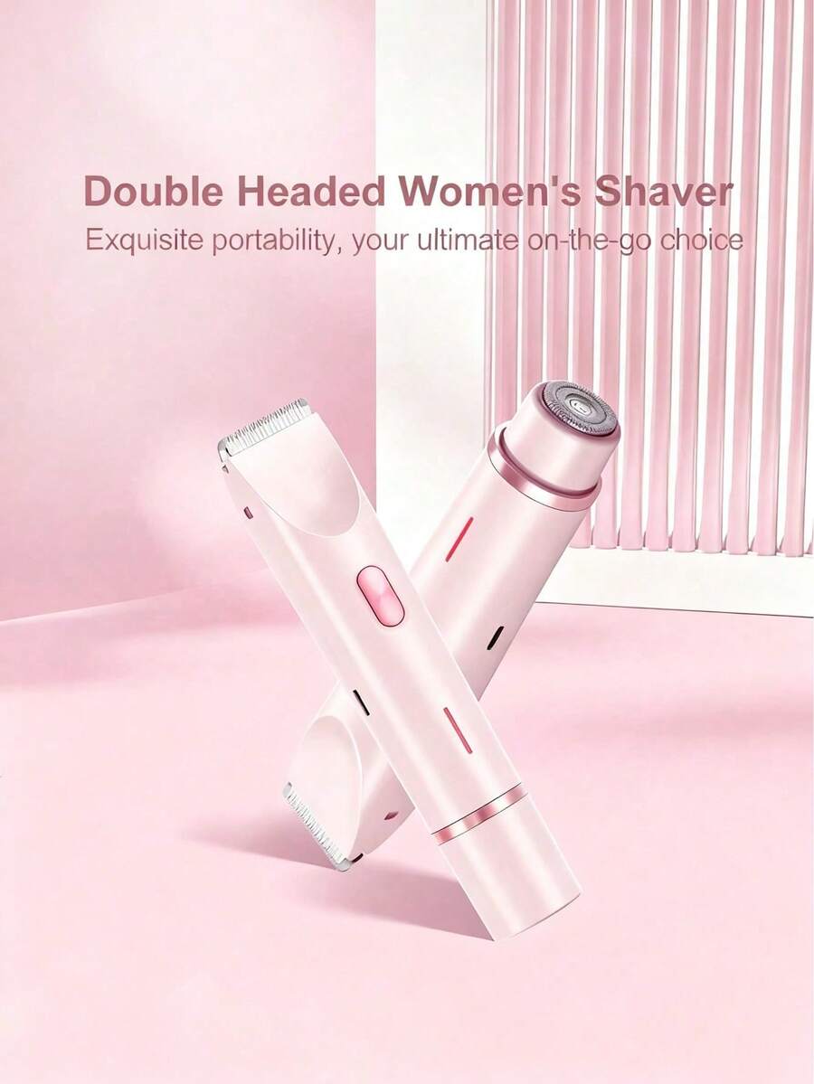 二合一粉色双头比基尼修剪器电动剃须刀,干湿两用,适用于全身脱毛,包括比基尼线、腋下、腿部、手臂、面部,电池续航时间长,可充电,低刺激刀片,符合人体工学的手柄,可调节修剪器,650mAh电池