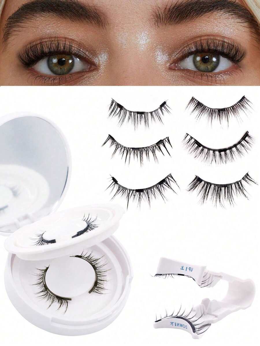 FindLove 2对装磁性假睫毛套装,自然浓密精致,带佩戴夹,单根睫毛,高品质可重复使用,专业磁性假睫毛套装