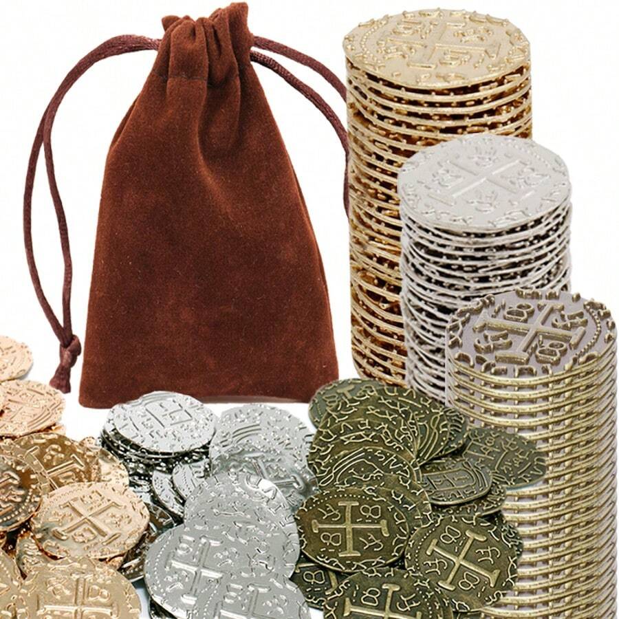 20/50/100/150枚合金海盗宝箱硬币套装,适用于桌游、游戏代币、角色扮演,是送给朋友的理想礼物。