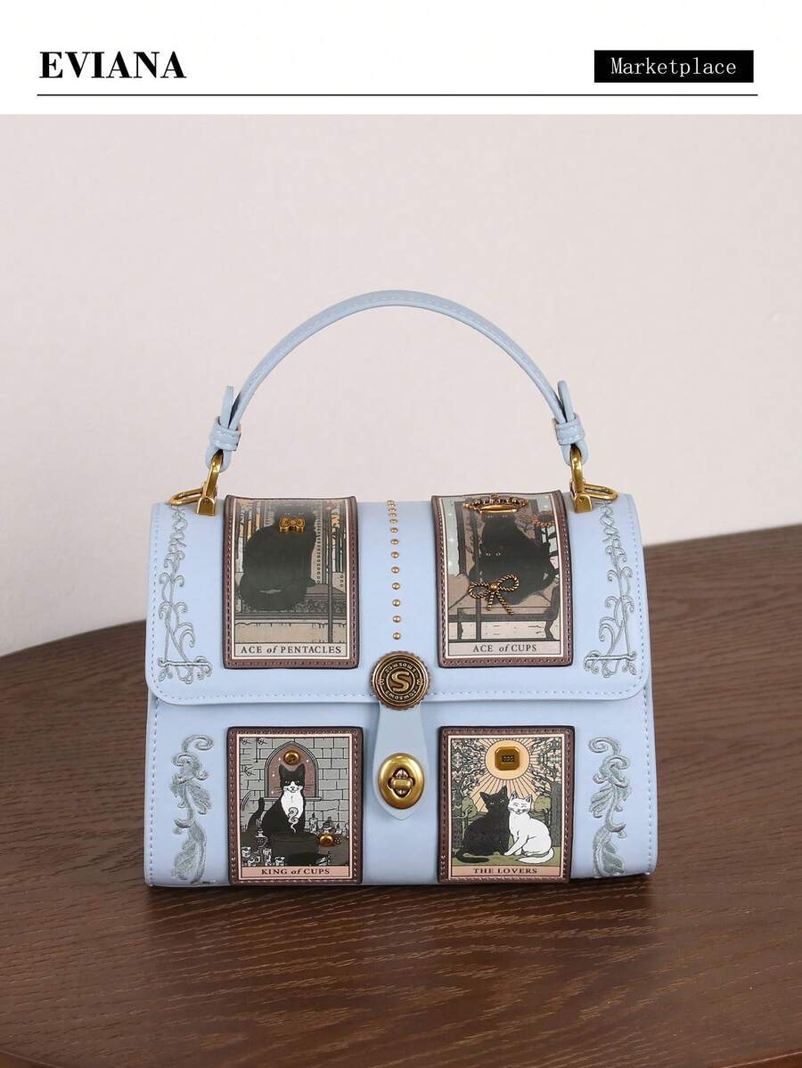 2026新款高端时尚女士手提包,复古Y2K奢华塔罗牌波士顿枕形包,精致工艺可爱猫咪图案医生包,粉紫色独特造型大容量圆形包,街头风小众设计女士托特单肩斜挎包