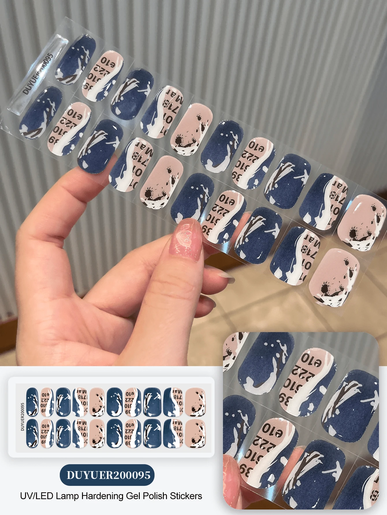 20片固化凝胶美甲贴纸,透明底油,沙龙品质,持久耐用,需UV灯固化,ES20跨境批发代发货美甲贴纸,美甲贴纸,美甲用品