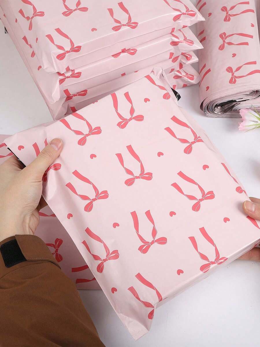 20个装心形粉色蝴蝶结红色丝带收纳袋,PE塑料邮寄袋,加厚物流袋,适用于女性、情人节、母亲节、返校季、交通运输、服装、文具、派对礼品包装,多功能包装,理想的节日礼品包装,满足您的所有需求