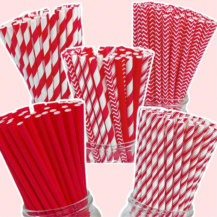 25支/100支装红色系列纸吸管,多种图案可选,一次性吸管,适用于新年、情人节、婚礼、周年纪念派对、圣诞装饰、节日用品