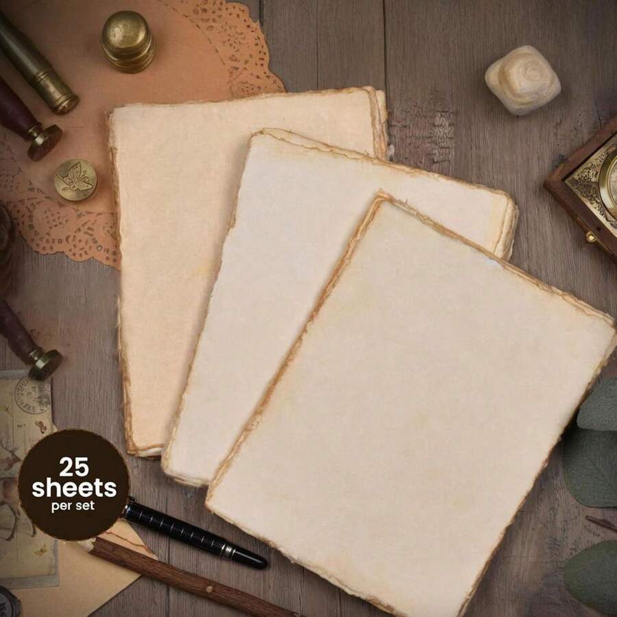 25张手工毛边纸 - 300克/平方米,柔和棕色,复古风格,纸张,邀请函纸,艺术婚礼纸,书法纸,优质毛边棉纸