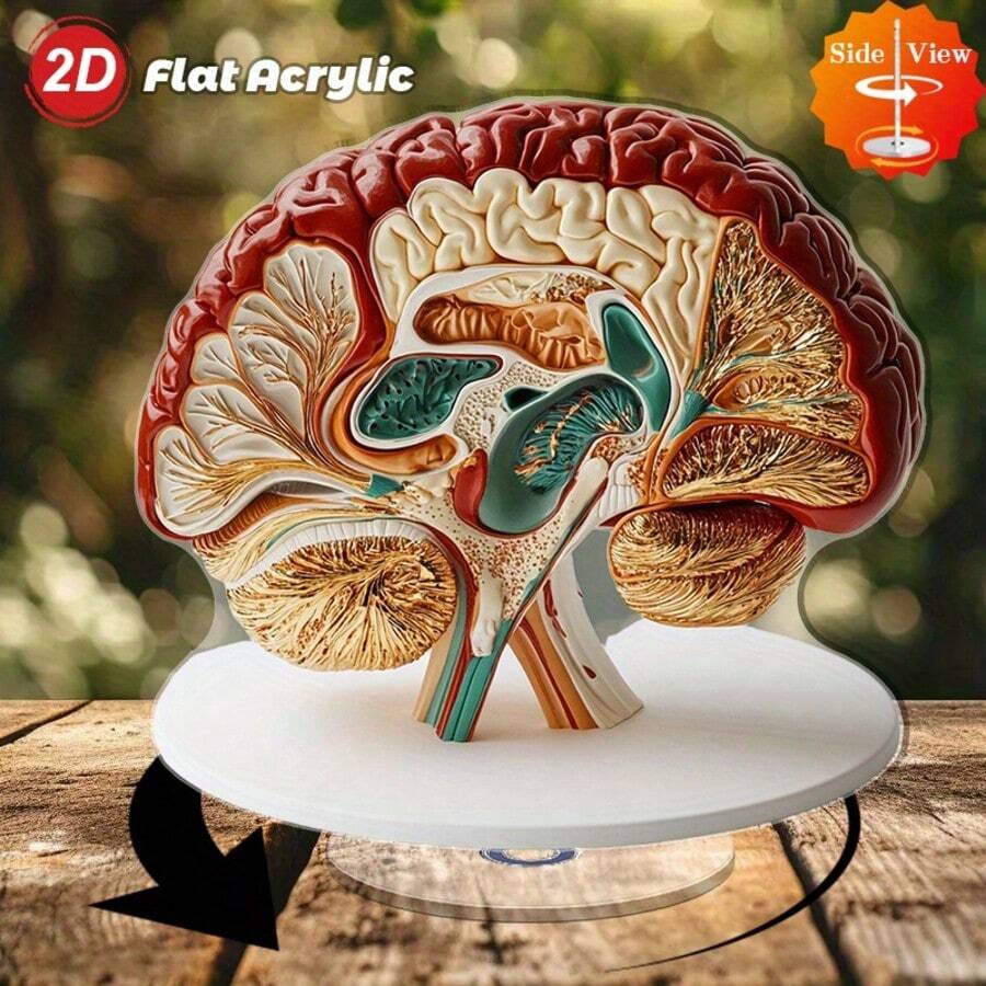 2D平面(0.3厘米厚)可旋转亚克力桌面摆件,逼真的解剖脑模型,可用于放松和教育展示,一套1个,适合日常使用、办公或艺术展示,2D平面