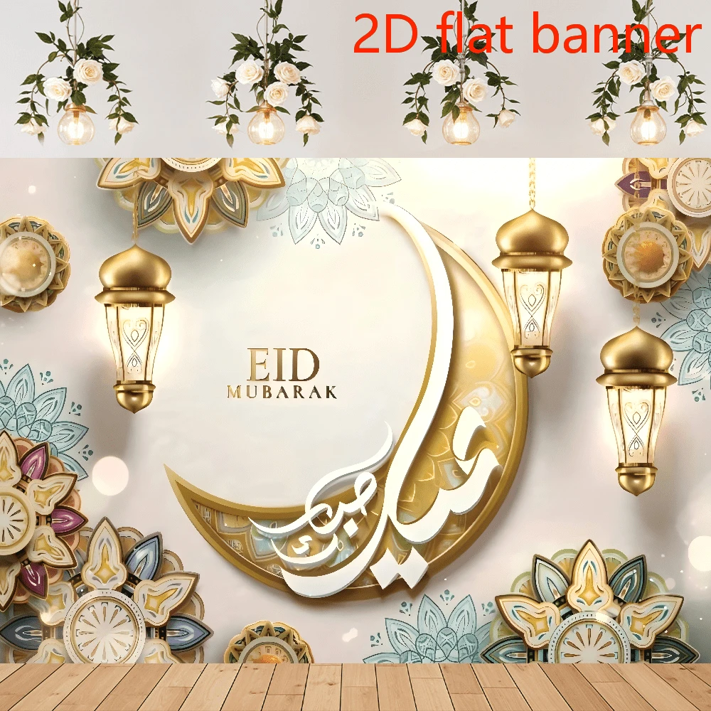 2D平面横幅 1件装 金色月亮开斋节摄影背景 - 斋月派对标志横幅和影棚道具