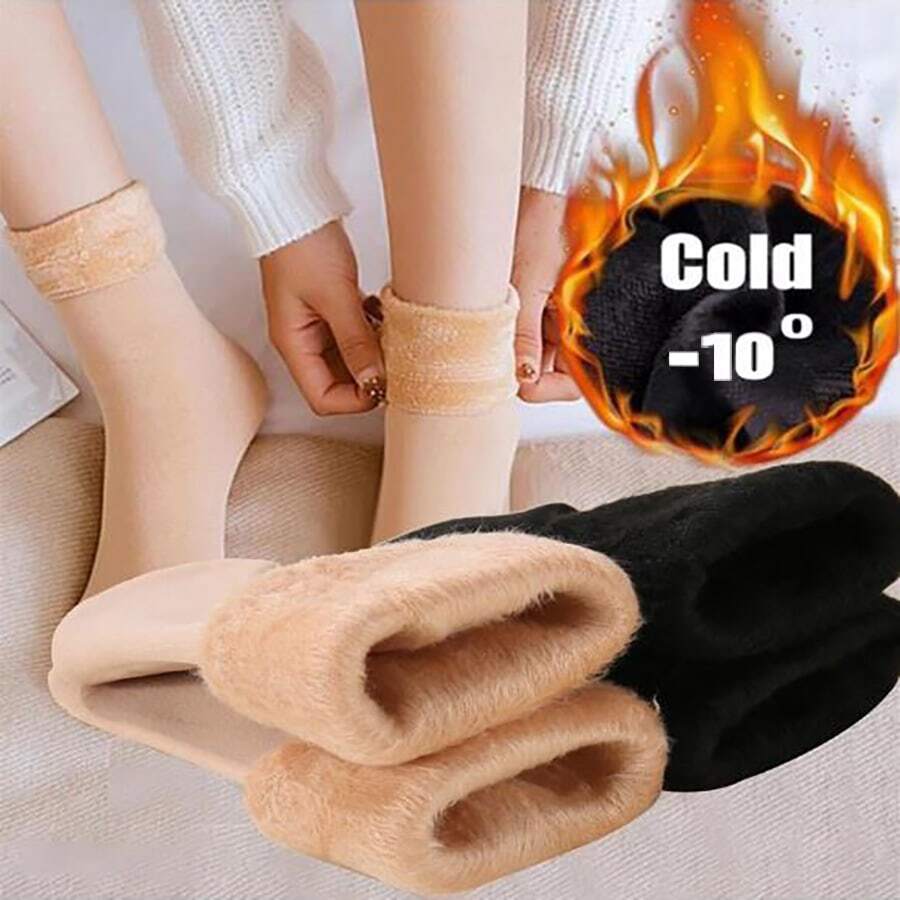 2雙女士素色毛絨內襯休閒中筒襪適合冬天