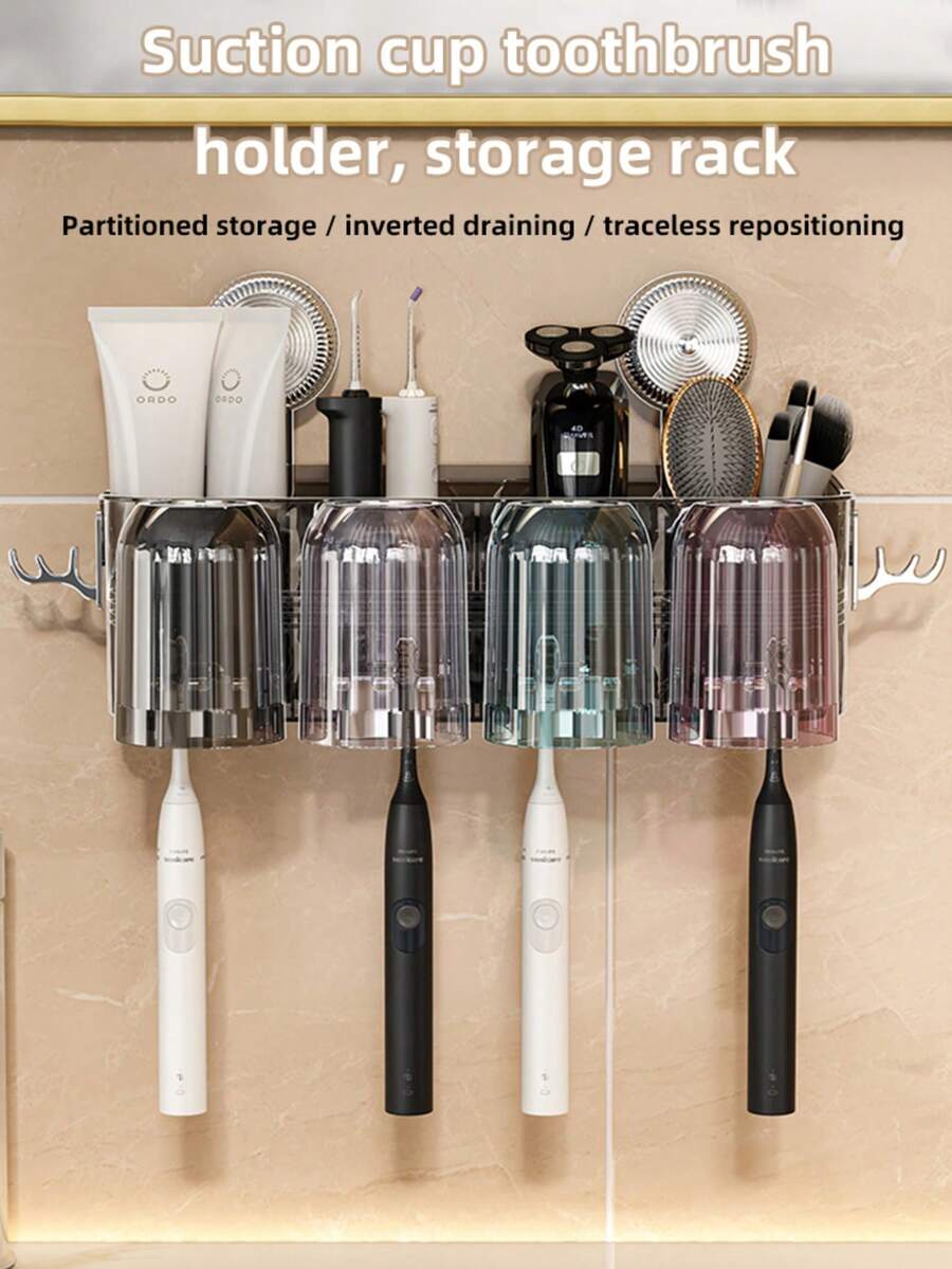 • 2 件/3 件/4 件病毒吸盘牙刷架壁挂式牙刷杯架牙膏收纳盒,无需钻孔