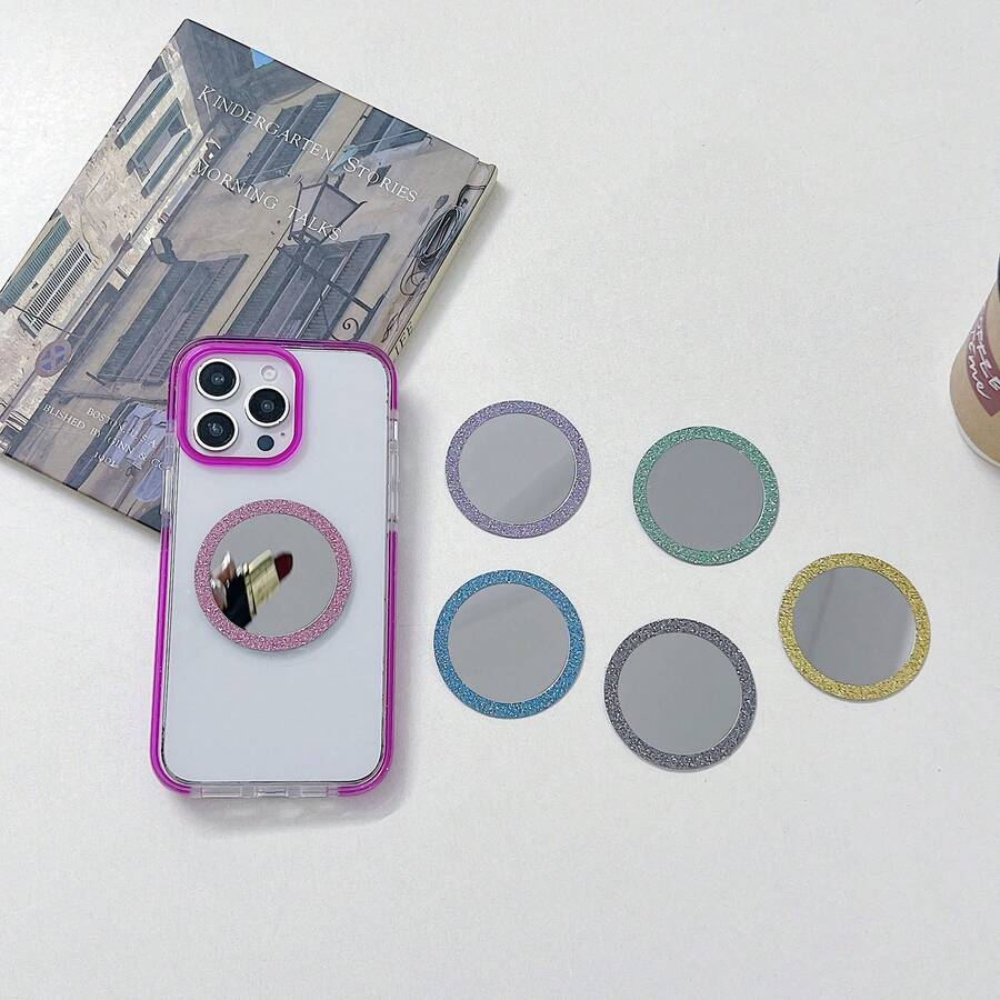 2片装时尚闪亮手机后盖DIY无线磁吸化妆镜,多功能亚克力镜面手机贴片,适用于化妆、补妆、小镜子、化妆镜、手机配件、手持镜