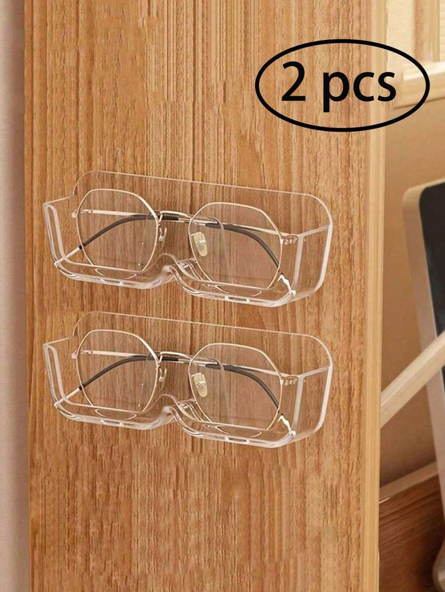 2 件眼鏡收納架,臥室床頭免打孔抗壓壁掛太陽眼鏡展示架,珠寶雜物收納收納架,適用於臥室梳妝台、梳妝台、免鑽孔眼鏡收納架、浴室壁掛式太陽眼鏡收納架(透明)