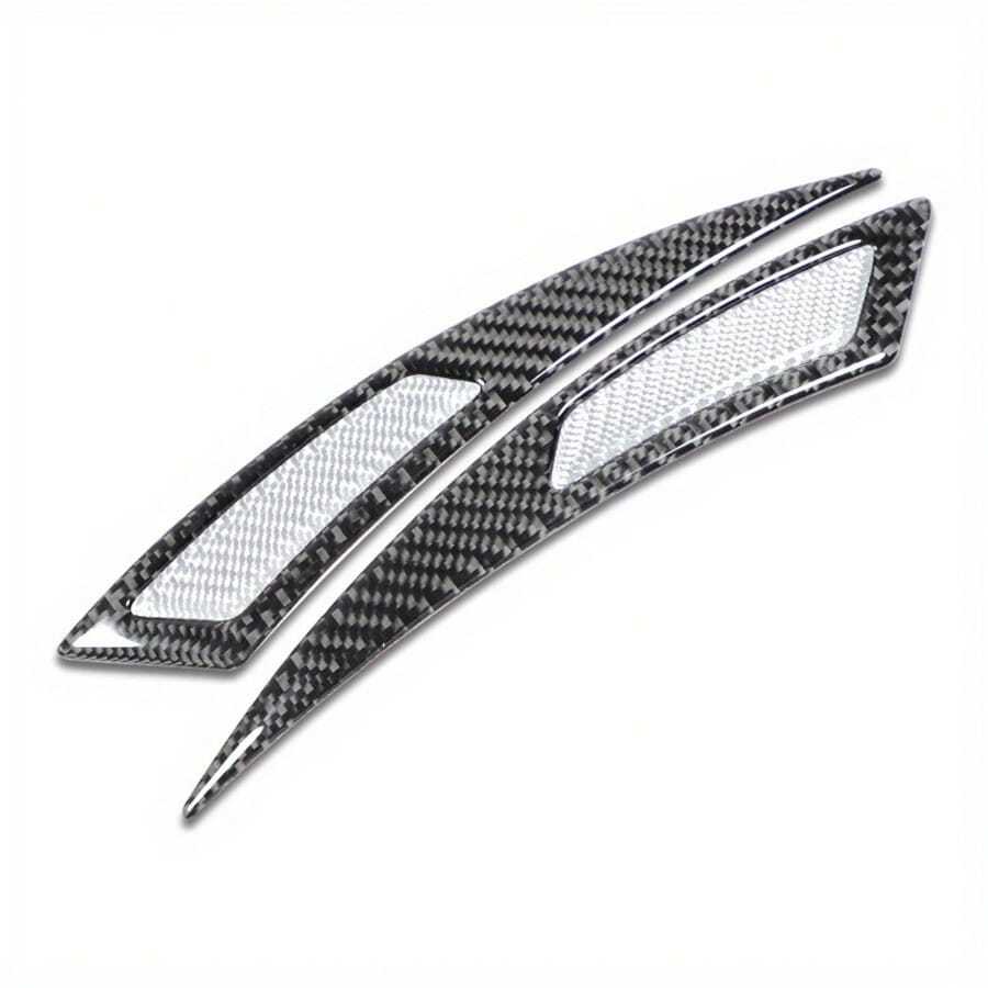 这款贴纸由 2 片高品质真碳纤维编织而成,表面涂有透明树脂涂层,呈现出逼真的三维纹理外观,模仿了专业汽车碳纤维部件。