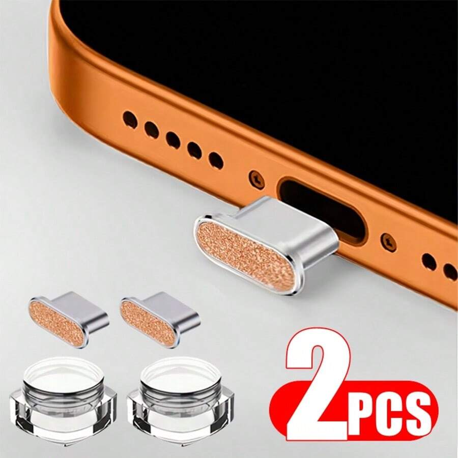 • 2个金属闪光防尘塞套装,兼容 17/16 Pro Max/兼容带Type-C充电口的,防尘塞保护 - 橘色 - 查看 2