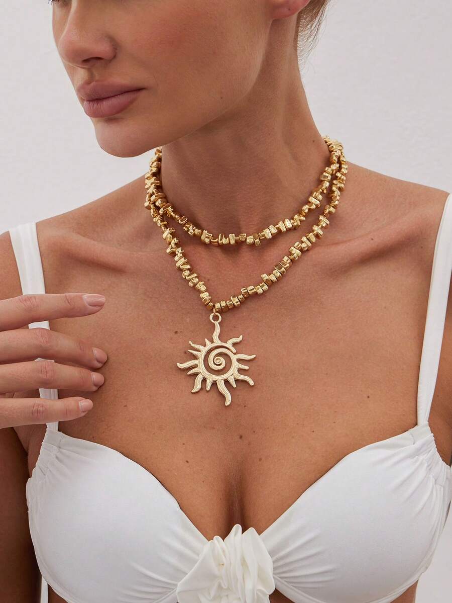 2件套几何方形CCB串珠火焰漩涡吊坠项链,优雅奢华珠宝,适合婚礼、派对、海滩、休闲、街头风格,女士及情侣款,节日及生日礼物
