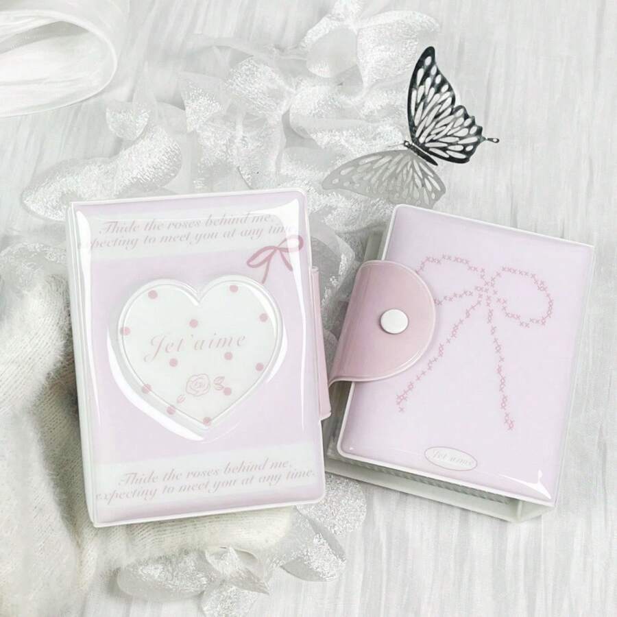 3-3.5英寸 1Pc K-Pop 卡夹,心形粉红玫瑰蝴蝶结卡大容量 3-3.5英寸照片卡收纳簿迷你相册,无酸无PVC照片夹相册(两种链条随机选择)