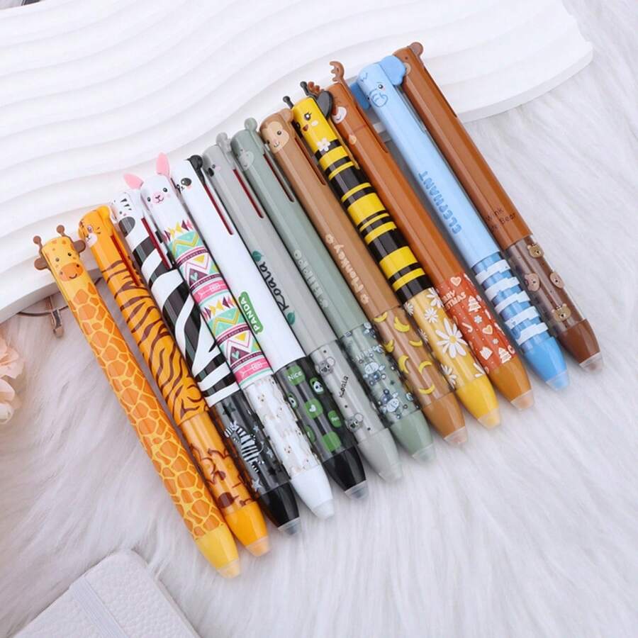 3/8支双色中性可擦笔 中性笔 双色(红蓝) 0.5mm 卡通动物文具可爱可擦易擦多色学生笔 卡通双色笔 老虎 小猴子 蜜蜂 大象耳朵 可爱高颜值可擦笔