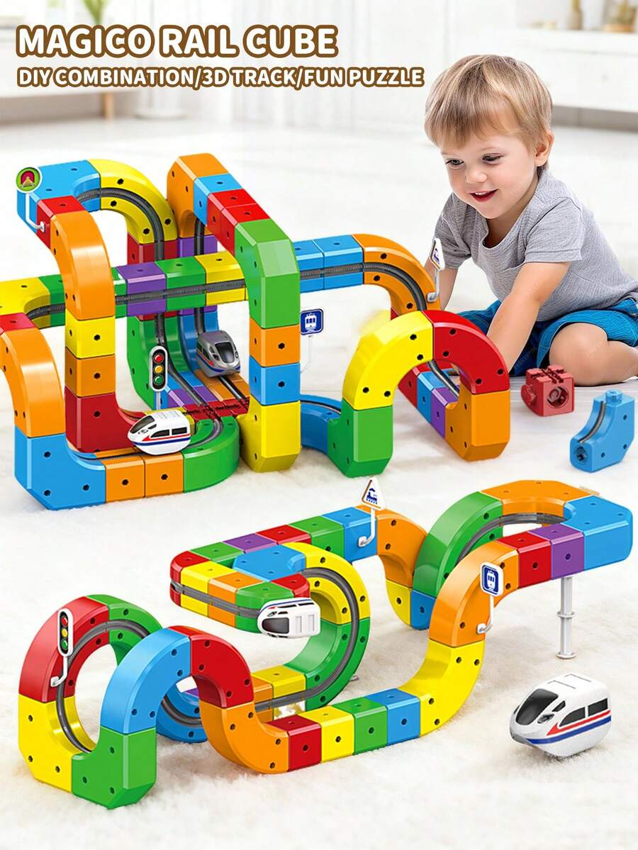 32/48/88 件模块化电动火车轨道套装,适合 3-5 岁儿童,包含连接轨道、反重力 3D 嵌入式布局和车辆,STEM 学习礼物,是万圣节、圣诞节和感恩节的理想选择。