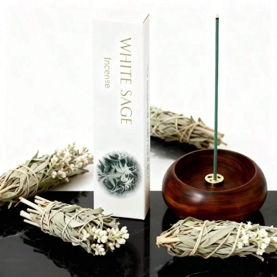 32根加粗型鼠尾草香薰棒,直径0.3厘米,精油浸润木质香氛棒,适用于瑜伽、冥想、净化负能量