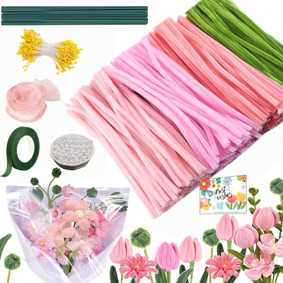 • 393 情人节毛根花艺套装,手工制作,包含特制毛根花茎、200 根毛根、10 根绿色花茎、1 卷胶带、约 150 颗珠光黄色花蕊、约 30 颗珍珠、1 条丝带、1 张贺卡,母亲节礼物 - 393pcs Set - 查看 12