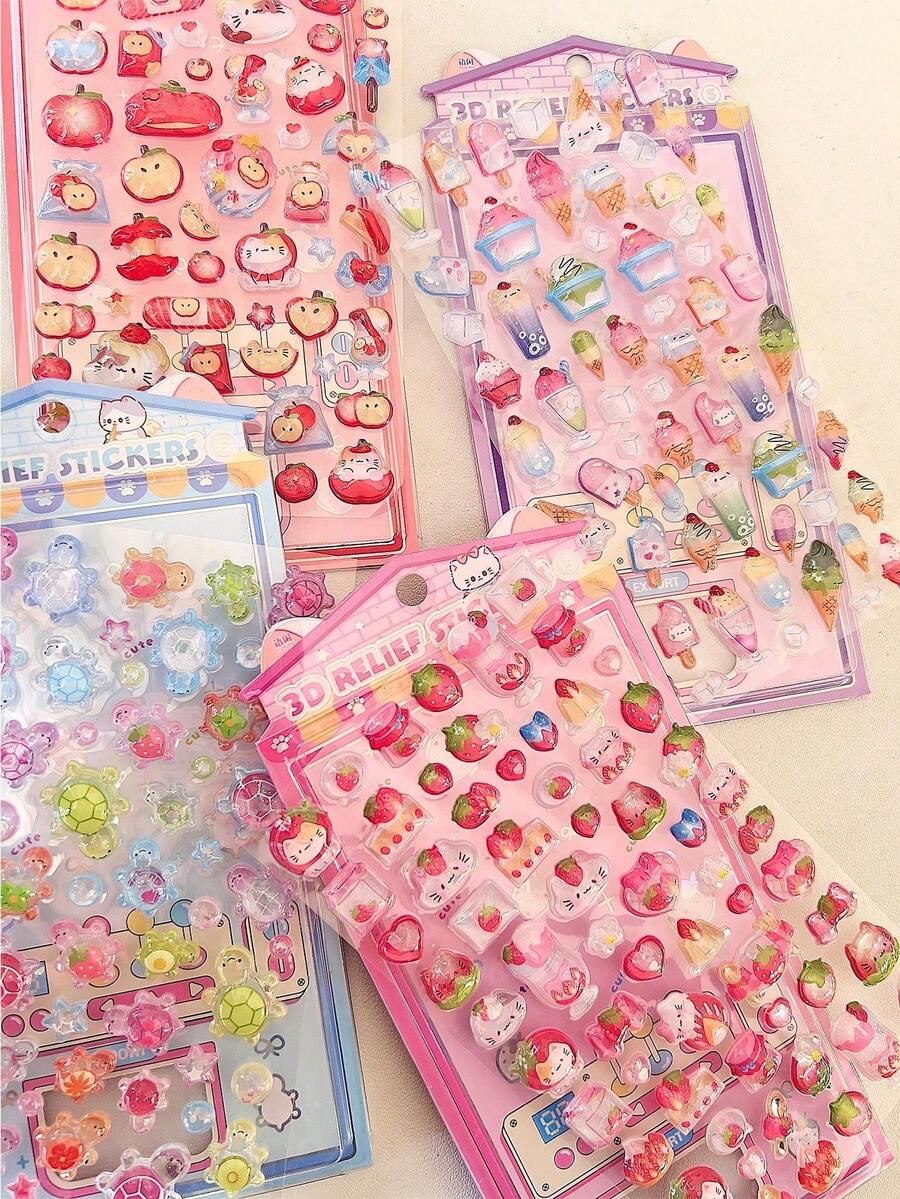 3D卡通贴纸、学生奖励、节日礼物、柔软可爱的DIY手机壳、笔记本、摇摇卡、3D浮雕可爱麦片贴纸