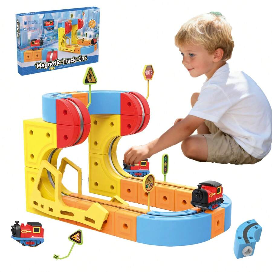 • 3D木制积木火车轨道套装,含火车和交通标志,STEM玩具,神奇轨道立方体积木,电动高速轨道火车,适合3-8岁儿童,生日派对礼物,66件USB充电电动火车玩具 - 彩色 - 查看 3