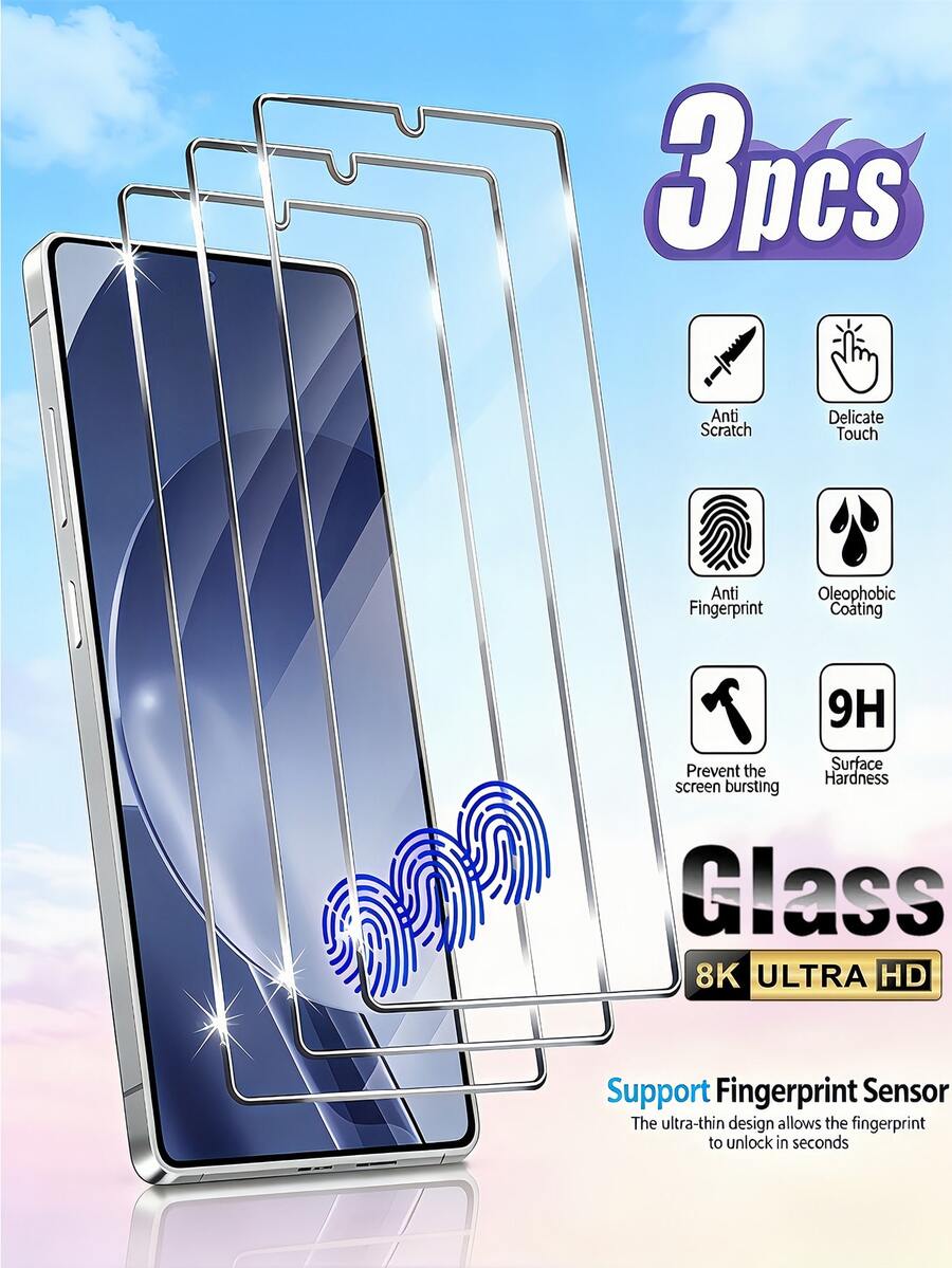 3片装钢化玻璃屏幕保护膜,兼容三星Galaxy A57 A56 A37 A26,9H硬度,防指纹,兼容手机壳,易于贴合,超薄设计,触控灵敏,防尘,全覆盖,不漏光。