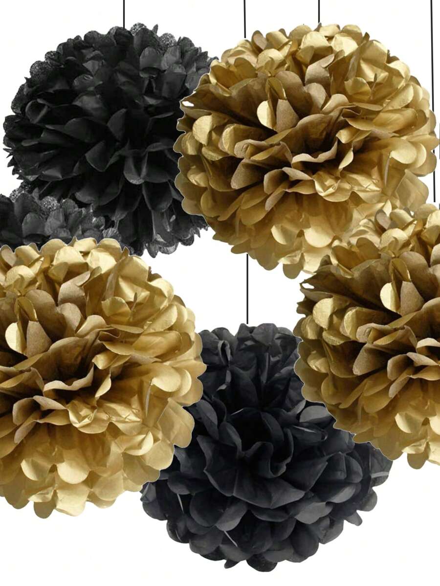 3 件金色人造纸花纸巾球适用于生日婚礼派对装饰、圣诞节
