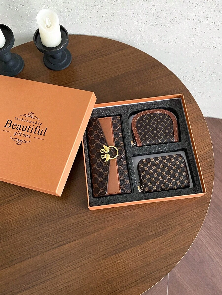 3件套女士迷你钱包卡包经典大容量拉链钱包PU皮革休闲钱包鳄鱼纹绗缝钱包母亲节礼物女士零钱包钱包小巧可爱钱包
