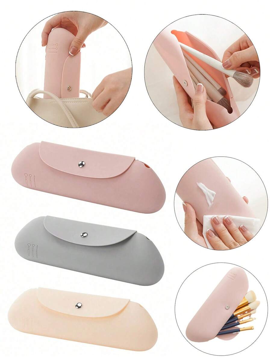 3个装硅胶化妆品收纳袋,防尘化妆刷收纳盒,便携式储物盒,户外旅行化妆品补妆配件袋