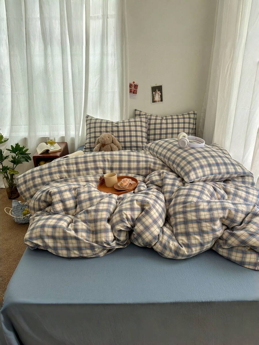 3件套加厚涤纶复古印花床上用品套装,适合男孩、女孩、宿舍、卧室,拉链封口,四季皆宜,柔软透气,适用于单人床、双人床、大号床、特大号床(1个被套,2个枕套,不含填充物)