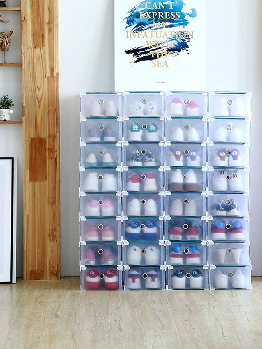 4/6 件透明可堆叠鞋盒,金属边缘设计,增强耐用性和质量,防尘抗氧化塑料柜,多层可折叠,适用于卧室