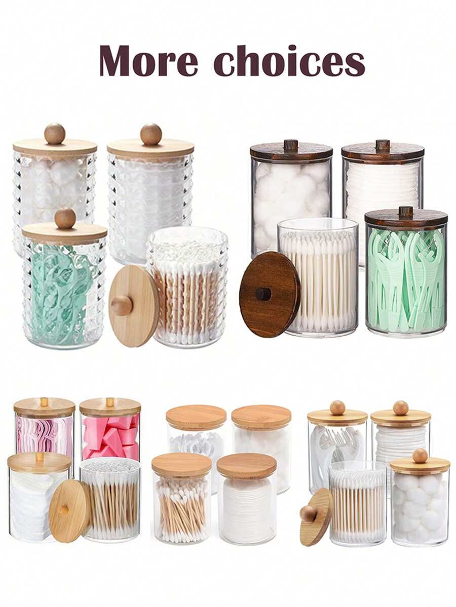 4件套棉签收纳盒,浴室收纳架,10/7盎司棉球/棉签分配器,带竹盖的药剂师罐,方便整理和存放