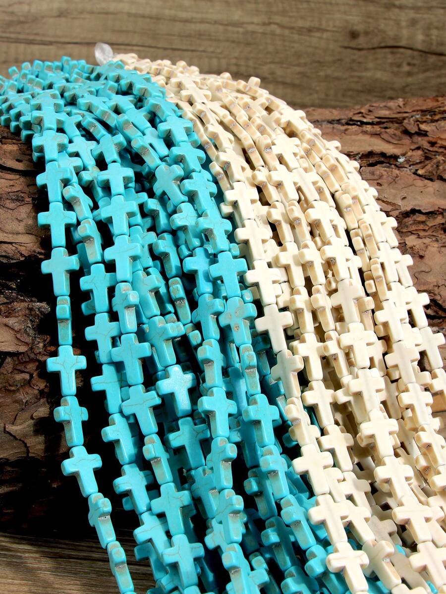 40厘米/串 合成蓝白绿松石十字形散珠,适用于珠宝制作。25颗12毫米x16毫米珠子,适合DIY项链、手链和脚链。珠宝装饰