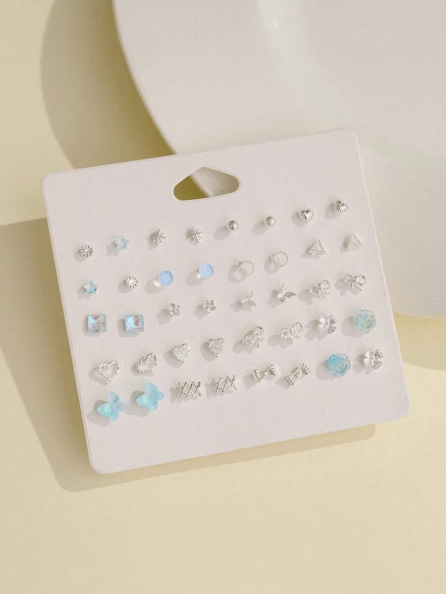 40 件锌合金可爱精致耳环套装,锌合金浅蓝色皇冠耳环,适合女性日常佩戴
