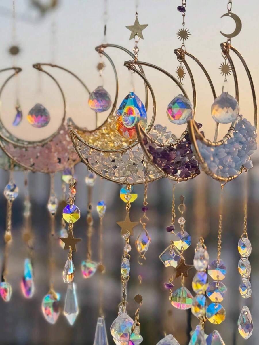 4 件/1 件 17.7*3.97*3.97 英寸星球星系水晶风铃太阳捕手星月照明吊坠适合家庭花园悬挂装饰节日派对女孩礼物、万圣节、幽灵、秋季、节日、节日装饰挂饰生日礼物毕业 E-I-D