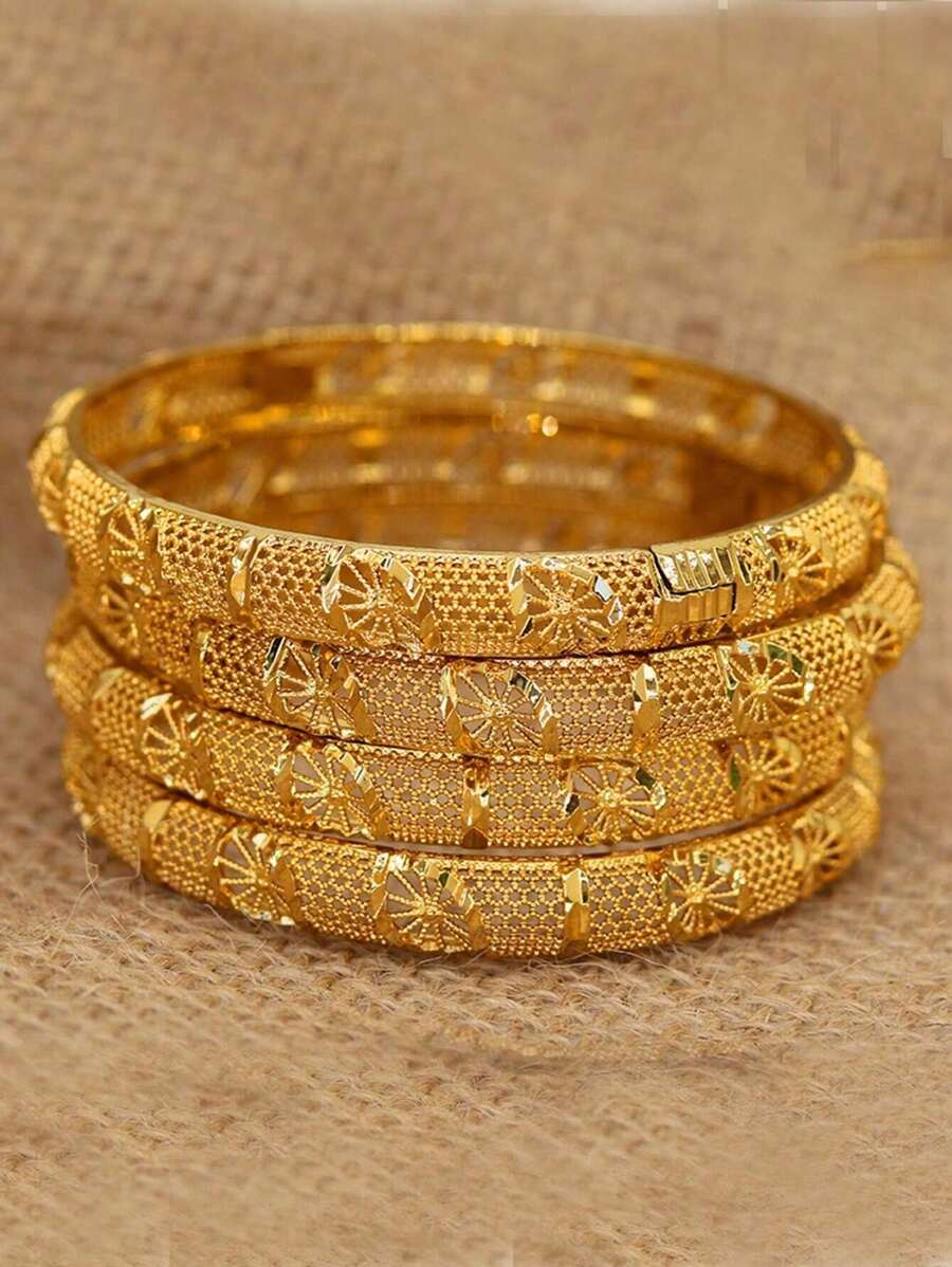 4入組迪拜風格24K鍍金銅手鍊,時尚新娘婚禮手鍊,珠寶禮品