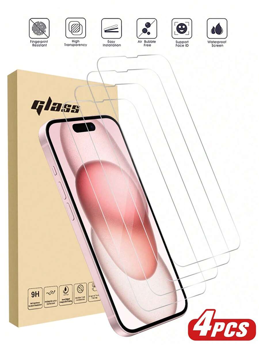 4 件/包钢化玻璃屏幕保护膜,高清透明,防水,防刮,兼容 Iphone7/8/X/XS/11/12/13/14/15 Pro Max/16 Pro Max/16 Plus/17/17 Pro/17 Pro Max/17 Air