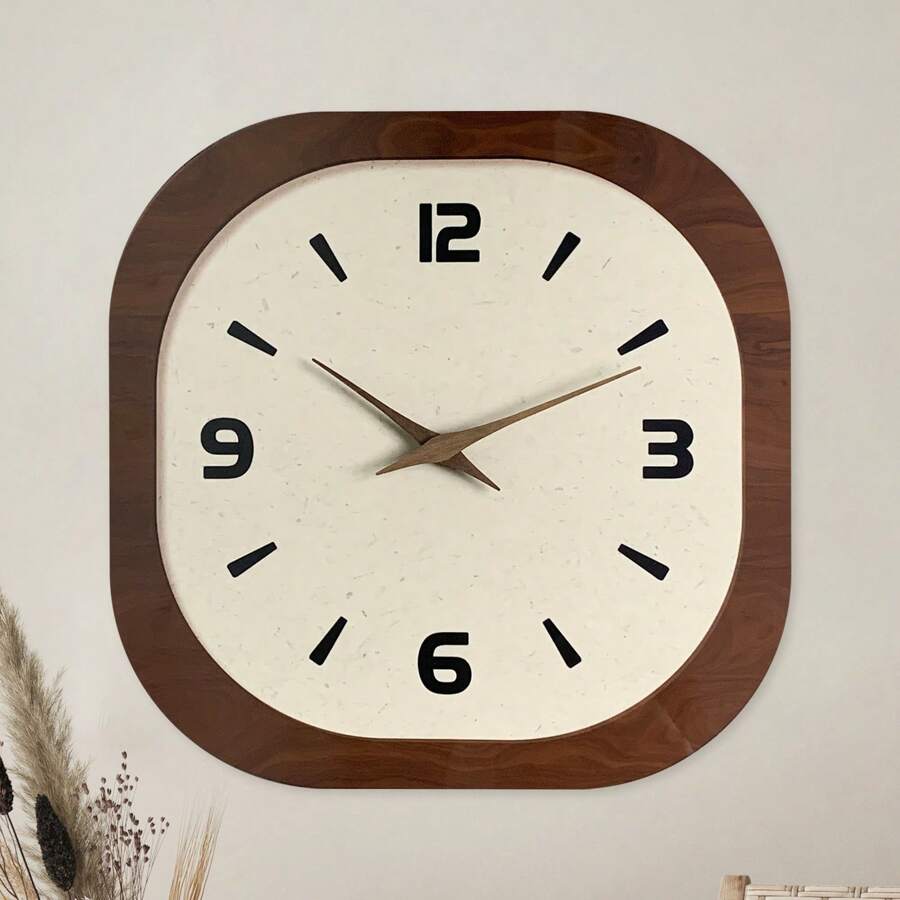 4 件复古现代法式奶油色不对称木质挂钟,静音石英无滴答钟,适用于客厅卧室餐厅户外家居装饰,12 英寸 14 英寸 16 英寸礼物(无电池,非立体),家居装饰,房间装饰