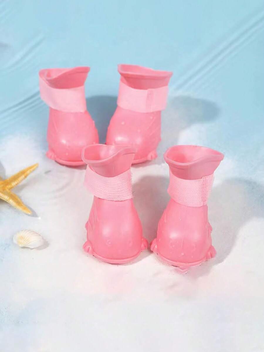4入組寵物狗防水保暖雨靴,防滑戶外毛孩襪套,粉色