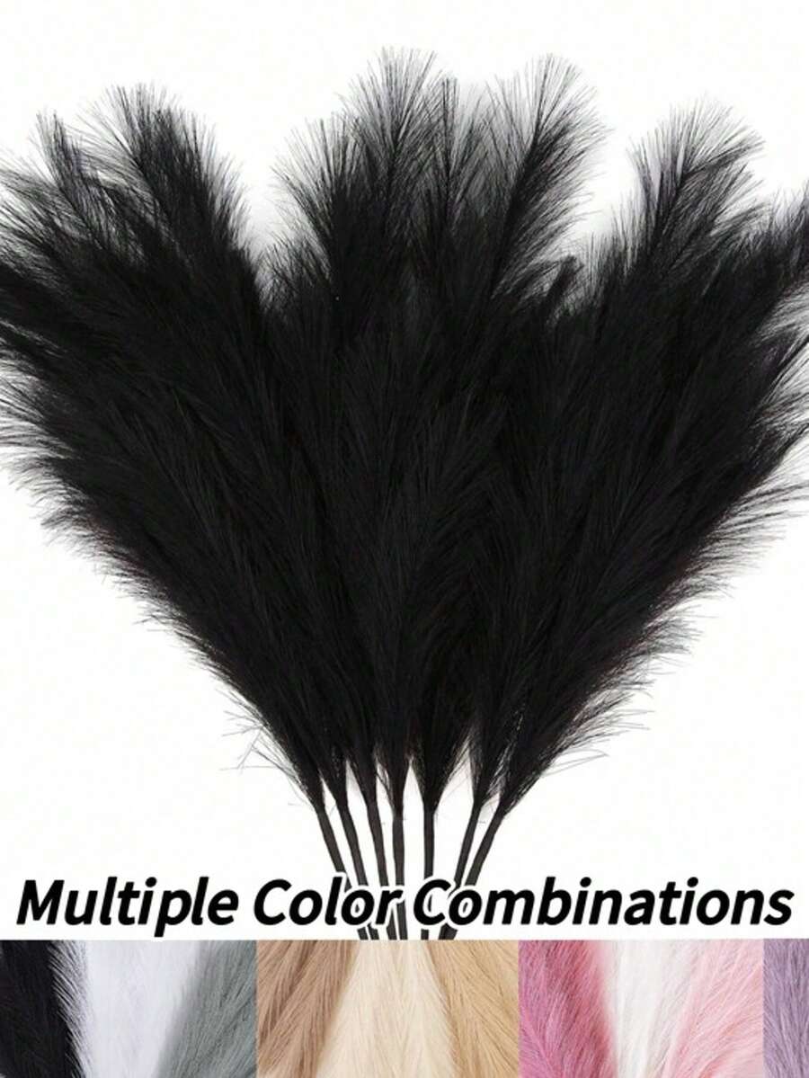 5/10/20 件黑色仿蒲苇人造芦苇蓬松人造假花波西米亚风格装饰,适用于婚礼派对装饰、居家客厅卧室装饰、花瓶布置、DIY 摄影道具、假植物、秋季装饰、房间、书桌、花园装饰、房间、情人节、生日毕业礼物、秋季装饰、秋季