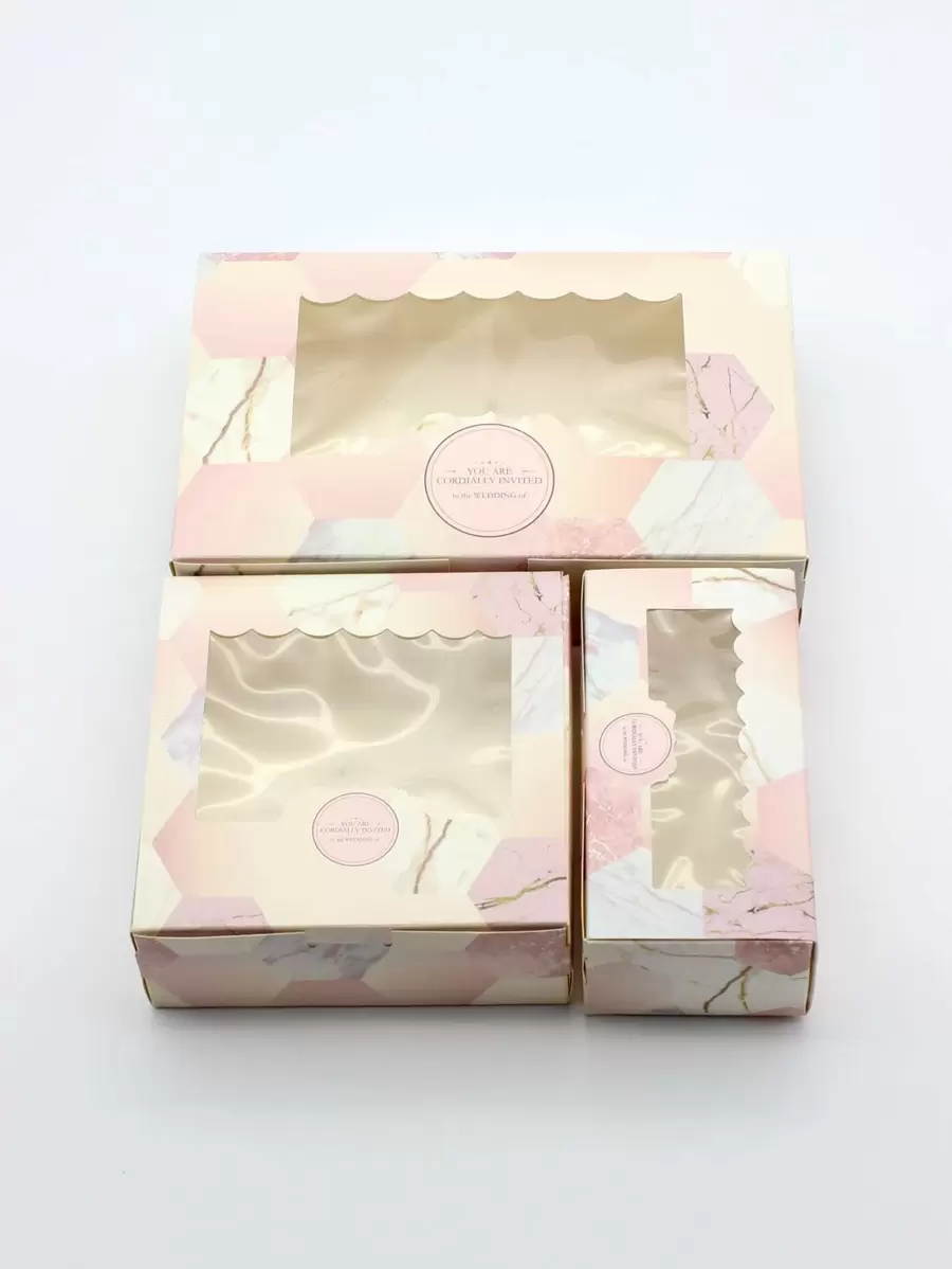 5/10 件粉色花岗岩大理石印花窗礼盒,婚礼/生日派对礼品糖果、巧克力、蛋糕盒,大尺寸情人节