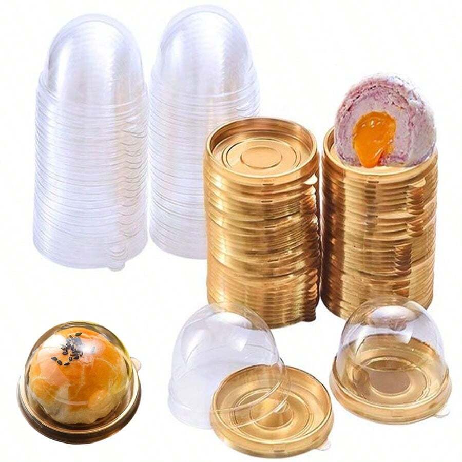 5/20/50/100/200个装可重复使用透明盖纸杯蛋糕盒 - 圆形中秋节月饼模具盒,适用于圣诞节、万圣节、婚礼、生日甜点 - 厨房收纳整理用品及配件,蛋糕容器